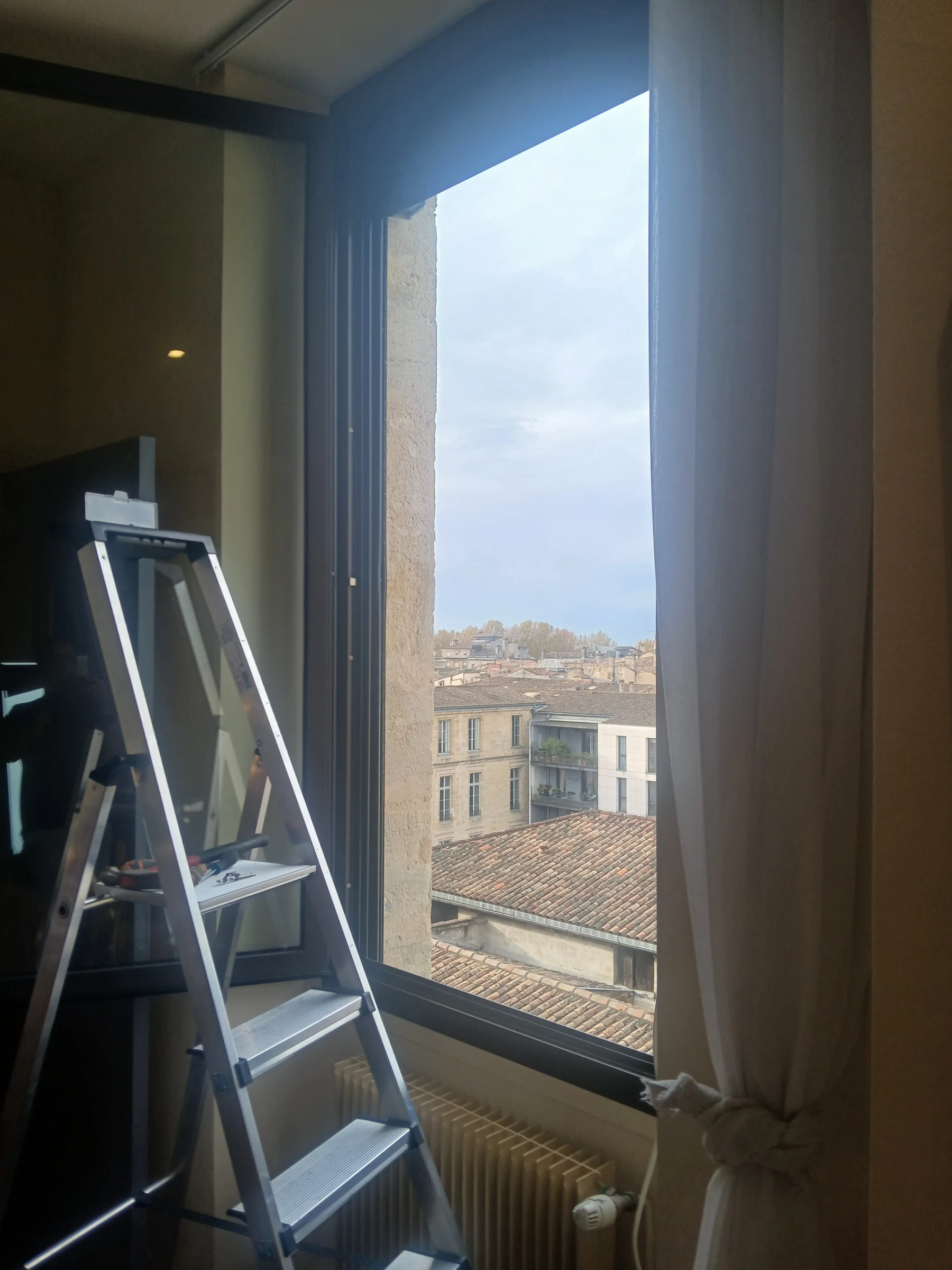 Dans la majorité de nos publication nous insistons sur le fait que nous installons et remplaçons les volets roulants sur toute la zone Bordelaise. Nous veillons également à prendre des photos de nos réalisations afin de vous assurer de notre professionnalisme. Mais cette fois nous attirons votre attention sur l'emplacement de l'appartement dans le quel nous sommes intervenus!! Nous vous invitons à regarder les photos , nous avions l'impression de pouvoir toucher la tour Pey Berland.!!